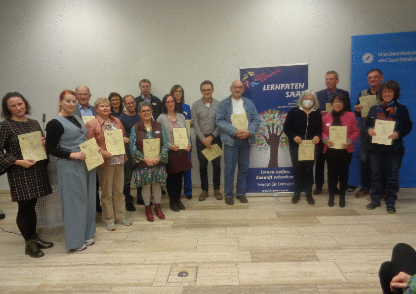 Es waren doch immerhin 48 Lernpaten zu der kleinen Feier der Lenpaten Saar gekommen. Einmal waren es die Absolventen der letzten Ausbildung, die an diesem Abend die Zertifikate für die Lernpaten-Tätigkeit erhalten haben, zum andern aber auch Lernpaten, die schon längere Zeit für dieses Bildungsprojekt engagiert sind. Im Mai haben die Lernpaten mit der Stiftung Bürgerengagement Saar ein neues Dach bekommen. Organisation und die gedankliche Auseinandersetzung mit dieser schwierigen Materie liegen jetzt allein in der Veranstwortung der Stiftung. 22 neue Zertifikate konnte der Vorstandsvorsitzende Dr. Christian Molitor übergeben, Projektleiter Gerhard Dahm und die Netzwerkgruppenleiterin Christine Christmann gaben einen Überblick über alle derzeitigen Aktiviäten. Ca 130 Lernpaten sind derzeit im gesamten Saarland aktiv. Reger Gedankenaustausch, eine angenehme Atmosphäre und ein gutes musikalisches Flair zeichneten die kleine Feier aus. Am 18.Januar 2024 beginnt ein neuer Qualifizierungslehrgang für die Lernpaten, diesmal in Saarlouis, Interessenten können sich bei www.lerpnaten-saar.de informieren und melden.